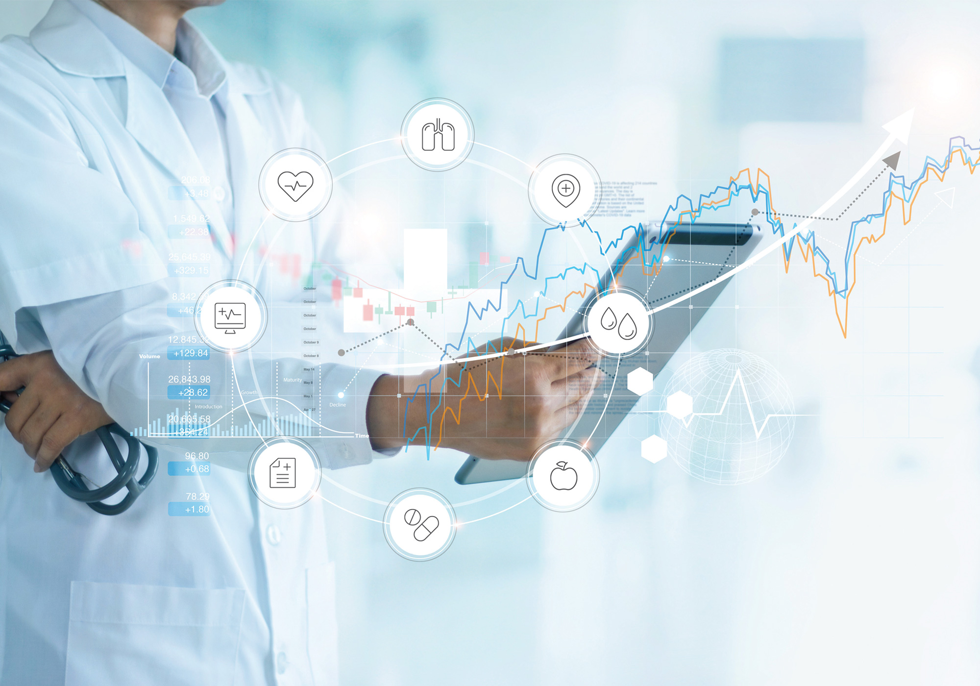 Controllo continuo, monitorato e sicuro di peso, composizione corporea, pressione arteriosa, frequenza cardiaca, saturazione di ossigeno e temperatura.
